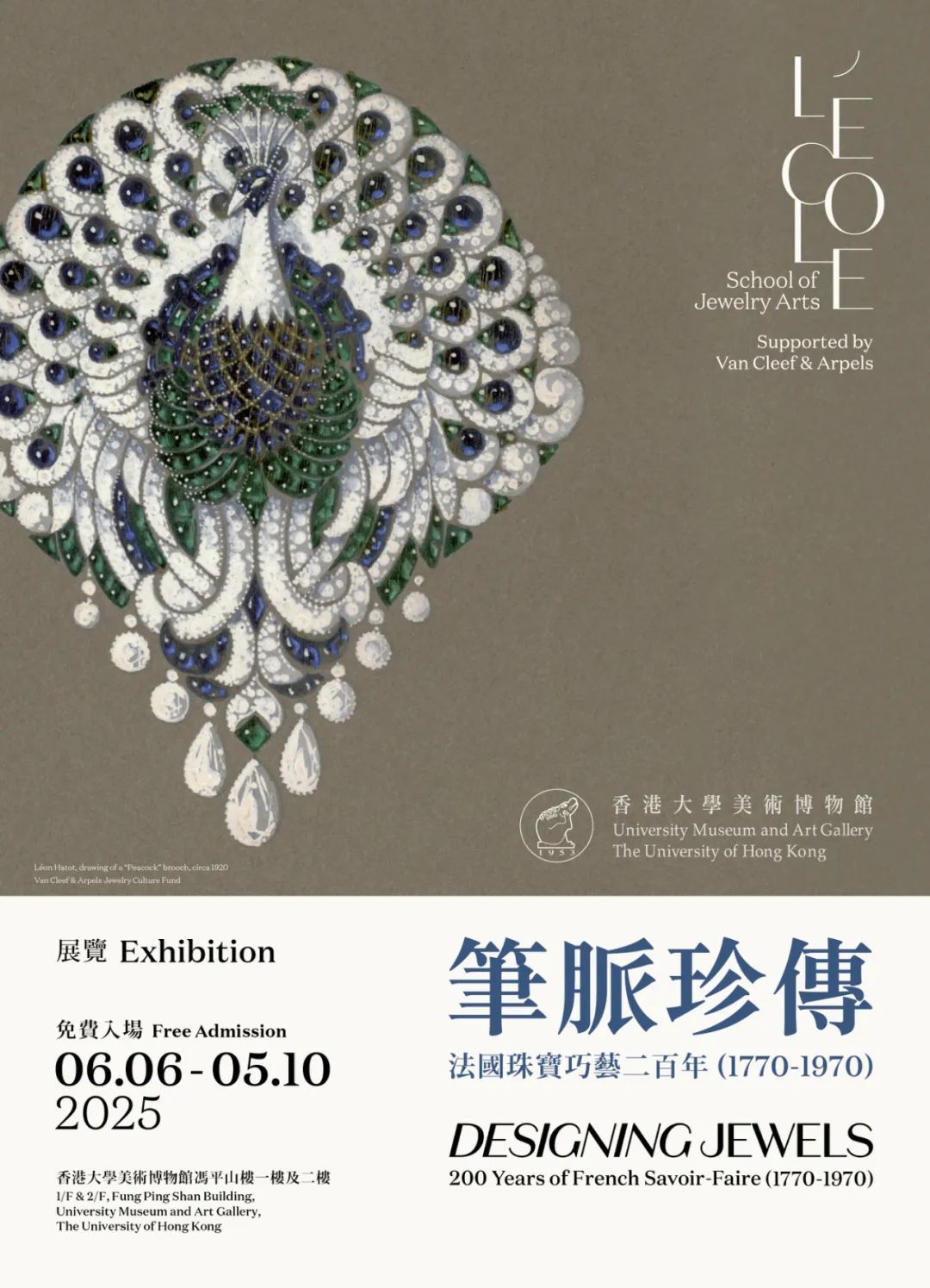 看点:展览由港大美术博物馆与 L'ÉCOLE 珠宝艺术学院合办,首次聚焦珠宝设计、珠宝杰作,以及贵金属与宝石艺术创作流程。展出逾百幅珠宝设计图稿与13件法国精致珠宝,呈现从构图、水粉画到成品的创作历程,带观众一览珠宝工艺背后的艺术逻辑。